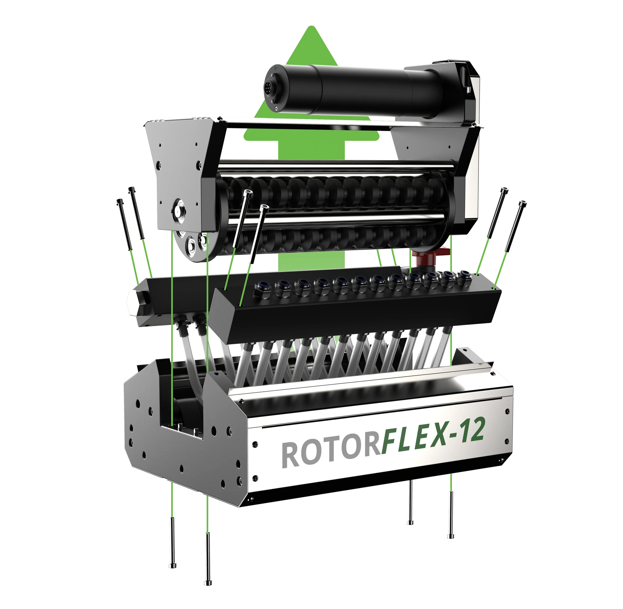 RotorFlex features a unique patented design that allows the operator to remove the rotor assembly with only 4 bolts. This provides immediate access to hoses in the event of a blockage or split hose making repairs much easier in the field.